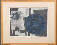 Chris Heeneman (1924-2003) 'Prent III', monoprint, r.o. gemonogrammeerd -gebobbeld, vergeeld, vochtschade passe-partout-, 37 × 27 cm