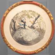 Jean Hardy (19e/20e eeuw), vrouw met eekhoorntje, aquatint, r.o. gesigneerd, Ø met lijst 64 cm