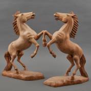 Paar gesneden houten beelden: steigerende paarden, Azië, tweede helft 20e eeuw -beide verbleekt, één met breukjes-, 50 × 38 × 12 cm
