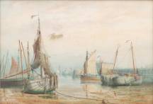 Engelse School: havengezicht met vissersboten, aquarel, l.o. gesigneerd C of G Bird en gedateerd 1884, 52 × 75 cm