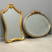 Ovale spiegel, 67 × 93 cm, en een goudkleurige spiegel, 80 × 51 cm -beide met defecte kuif-