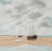 Leo Pors (1952), drooggevallen schepen op het wad, olieverf op board, r.o. gesigneerd en gedateerd 2012, 65 × 65 cm