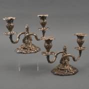 Paar verzilverde tweelichts kandelabers -doorgepoetst-, 17 × 25 × 12,5 cm