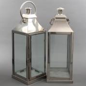 Paar zilverkleurige lantaarns, modern, hoogte 50 cm