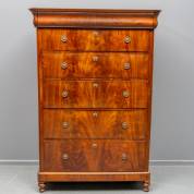 Mahonie ladekast met vijf in grootte verschillende lades, Hollands, 19e eeuw -krasjes, miniem fineerverlies-, 170 × 113 × 53 cm