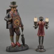 Klokkenmannetje, 40 cm, daarbij: aapvormige kandelaar