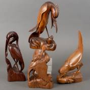 Vier gesneden houten beelden: vogels, Bali, tweede helft 20e eeuw, grootste 32 cm