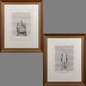 Paar neoclassicistische gravures: 'Posidippe' en 'Antinoüs en idole Egyptienne', naar het beeld Osiris-Antinous uit de Villa Hadriana, uit: 'Musée Français: Recueil des plus beaux tableaux, statues, et bas-reliefs qui existaient au Louvre avant 1815', Parijs, circa 1830, 42 × 31 cm