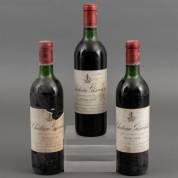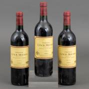 Drie flessen rode wijn: Château Lynch-Moussas, Pauillac, 1996 -vulniveau: alle mid neck-