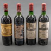 Vier diverse flessen rode wijn, alle Saint-Julien: Château Ducru-Beaucaillou, 1967 -vulniveau: top shoulder-; tweemaal Château Leoville-Las Cases 'Grand Vin de Leoville', 1967 en 1970 -beide high shoulder-; en Château Lagrange, 1983 -high shoulder, etiket gehavend-