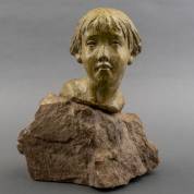 Jos van Acker (1937), meisjeskop, gepatineerd brons 2/5, verso gesigneerd, op natuurstenen voet, totale hoogte 26 cm