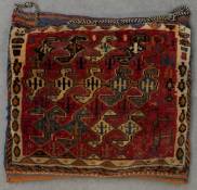Perzisch kussen Kaskay met gestileerd dieren- en figurenmotief, 49 × 53 cm