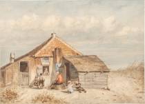 Hollandse School: vissersfamilie bij huis, aquarel, r.o. gemonogrammeerd H.v.G. en gedateerd 1859