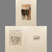 Willem van Konijnenburg (1868-1943), drie studies met koeien, waarvan twee in aquarel en één in inkt, twee zijn er gemonogrammeerd, met uniforme passe-partouts, 37 × 25,5 cm, 37 × 23,5 cm en 10 × 14 cm