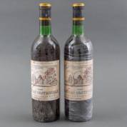 Paar flessen rode wijn: Château Cantemerle, Haut-Médoc, 1968 -vulniveau: top shoulder-