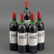Vijf flessen rode wijn: Château Croque Michotte, Saint-Emilion, 1978 -vulniveau: alle high shoulder-