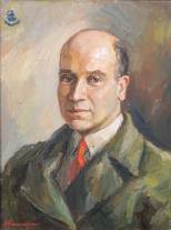 Max Himpe (1920-1975), portret van een man in groene jas, olieverf op doek, l.o. gesigneerd, 60 × 45 cm