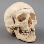 Menselijke schedel met opengezaagd cranium, inclusief onderkaak
