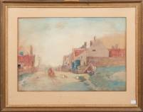 Hollandse School: dorpsstraatje, pastel en aquarel op papier, r.o. gesigneerd H. Endlich, 26 × 38 cm