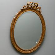 Ovale geslepen spiegel in goudkleurige striklijst, 20e eeuw, 66 × 59 cm