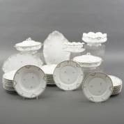 Porseleinen servies, decor Versailles, uitvoering Rosenthal, bestaande uit: twaalf dinerborden, elf diepe borden, tien ontbijtborden, twee bedekte terrines -één dekselknop met defect-, spoelkom, twee dekschalen, en een saucière