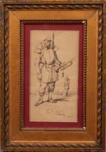 Franse School: soldaat met trompet, inkttekening op papier, r.o. gesigneerd en gedateerd '64, 19e eeuw, 15 × 9 cm