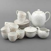 Porseleinen mokkaservies met gouden bies en sterretjesdecor, uitvoering Arzberg, bestaande uit: mokkapot, bedekte suikerpot, roomkan en tien kop-en-schotels, hoogte mokkapot 14 cm
