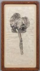 Inktdruk op perkament: iris, gemonogrammeerd JK, 38 × 19 cm