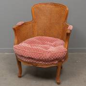Damesfauteuiltje met rietbespanning en roze velours bekleding