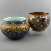 Twee grote geglazuurde aardewerk cache-pots, 30 × Ø 45 cm