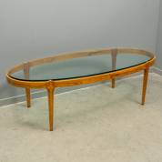 Eiken ovale salontafel met glazen blad, modern -krasjes-, 50 × 72 × 158 cm