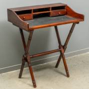 Open mahonie bureautje met lederen schrijfblad op opvouwbaar onderstel -defecten-, 90 × 76 × 50 cm