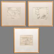 Jo van Dreumel (1941-2011), drie werken, composities in zwart-wit, litho's, l.o. genummerd en r.o. gesigneerd en alle gedateerd '77, grootste 24 × 30 cm