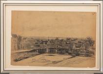 Hollandse School: gezicht op een dorp, houtskool op papier, niet gesigneerd, circa 1900 -defecten-, 32,5 × 49,5 cm