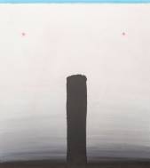 Sies Johannes Bleeker (1941-2014), zonder titel, acrylverf op doek, verso gesigneerd en gedateerd 1988, herkomst: Collectie Galerie Jas, Utrecht -deukje en craquelé rechts naast paal, enkele donkere vegen 50 × 45 cm