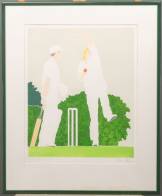 Engelse School: 'Fast bowler', ingekleurde preegdruk, 25/150, r.o. onduidelijk gesigneerd en gedateerd 1982 -vochtschade aan passe-partout-, 50 × 40 cm