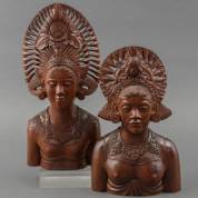 Twee gesneden houten bustes: beide Balinese schones, Bali, eind 20e eeuw, hoogste 37 cm hoog