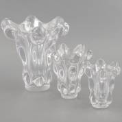 Set van drie 'giraffekop' helder glazen vazen, uitvoering Vannes-le-Châtel Frankrijk -gebruikssporen-, 27 × Ø 26 cm