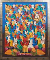 Schilderij: Afrikaanse markt, olieverf op paneel, r.o. gesigneerd N. Bertrand, 74,5 × 60 cm