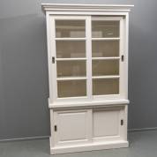 Witgeschilderde servieskast met twee beglaasde schuifdeuren en twee dichte schuifdeuren, modern, 220 × 120 × 50 cm