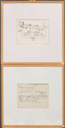 Jo van Dreumel (1941-2011), twee werken: 'Abatoir de Grosage', beide (kleur)potlood op papier, r.o. gesigneerd en gedateerd '79, 33 × 42 cm