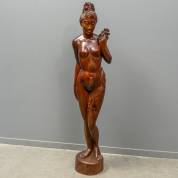 Gesneden teakhouten beeld: naakte vrouw, Bali, tweede helft 20e eeuw, hoogte 153 cm