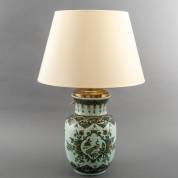 Aardewerk tafellamp met crèmewitte kap, decor: 'Paon', uitvoering Villeroy en Boch, 45 × 26 cm