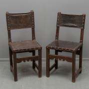 Twee met leder beklede vruchtenhouten stoelen, 17e/18e eeuw, 97 × 44 × 42 cm