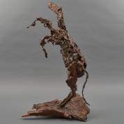 Beeld op houten sokkel: geabstraheerd steigerend paard, modern, totale hoogte 67 cm