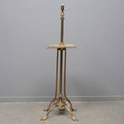 Vloerlampvoet met natuurstenen tafelblaadje halverwege de messing poten -blaadje gebarsten, geen kap-, 148 × Ø 51 cm