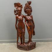 Gesneden houten beeld: Balinees huwelijkspaar, tweede helft 20e eeuw, 95 cm