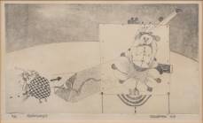 Cees Kortlang (1926-2008), abstracte compositie met figuren, linosnede, r.o. gesigneerd en gedateerd '89