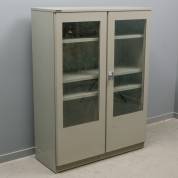 Lichtgrijze stalen medicijnkast met beglaasde deuren, uitvoering Gispen -lichte gebruikssporen-, 136 × 100 × 41 cm