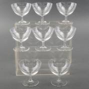 Acht ijscoupes met geslepen stam, model Gilde, ontwerp Andries Dirk Copier, uitvoering Glasfabriek Leerdam, 9 × Ø 10 cm
